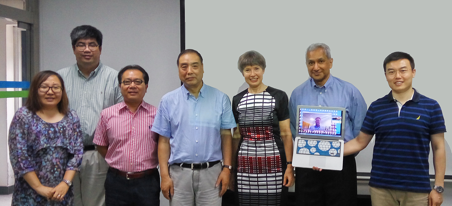 (Pictured L to R: Dr Lina Wang, ECUST; Prof Lin Wang, FDU; Prof Hai Guo, HK PolyU; Prof Fahe Chai, CRAES; Prof Lidia Morawska, QUT; Dr Rohan Jayaratne, QUT; Dr Jian Gao, CRAES; and on Skype A/Prof Ben Mullins, CU)